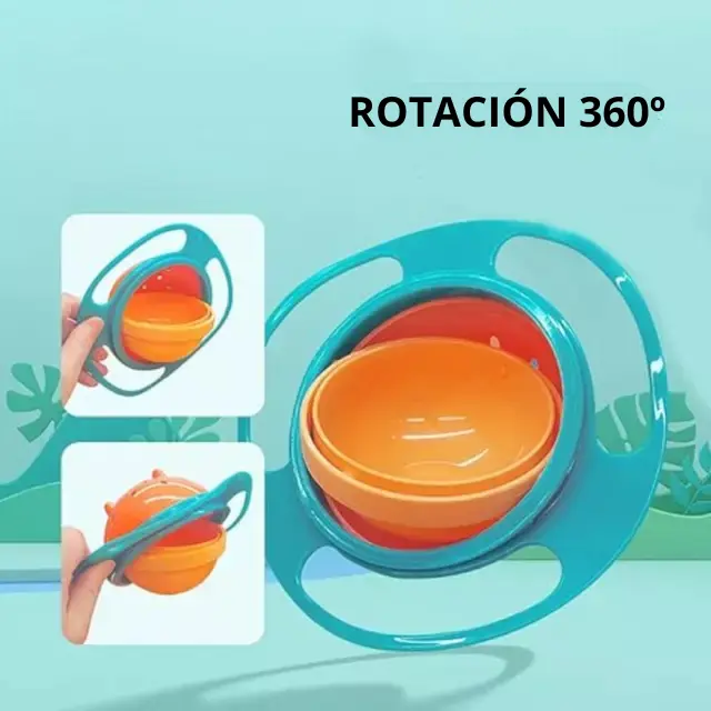 Sabemos que ya tienes suficientes cosas en qué pensar… Por eso este plato antiderrame es tu mejor aliado. ¡Gira, se mueve y la comida siempre queda en su lugar! ?✨